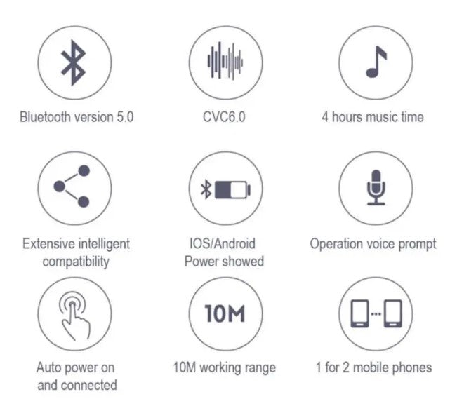 4. 2-in-1 connection: support sync connections with 2 cellphones, CVC 8.0 noise reduction, smart voice prompt function.